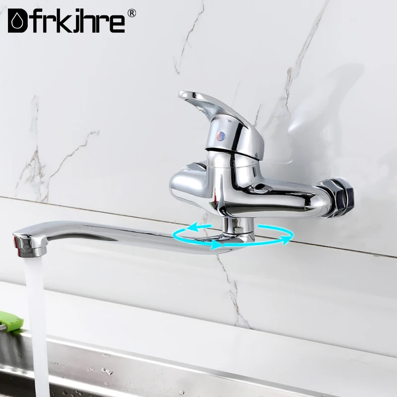 Name: Grifo cromado para lavabo de baño, montaje en pared de latón, agua del fregadero, mezclador de agua fría y caliente, boquilla larga giratoria
